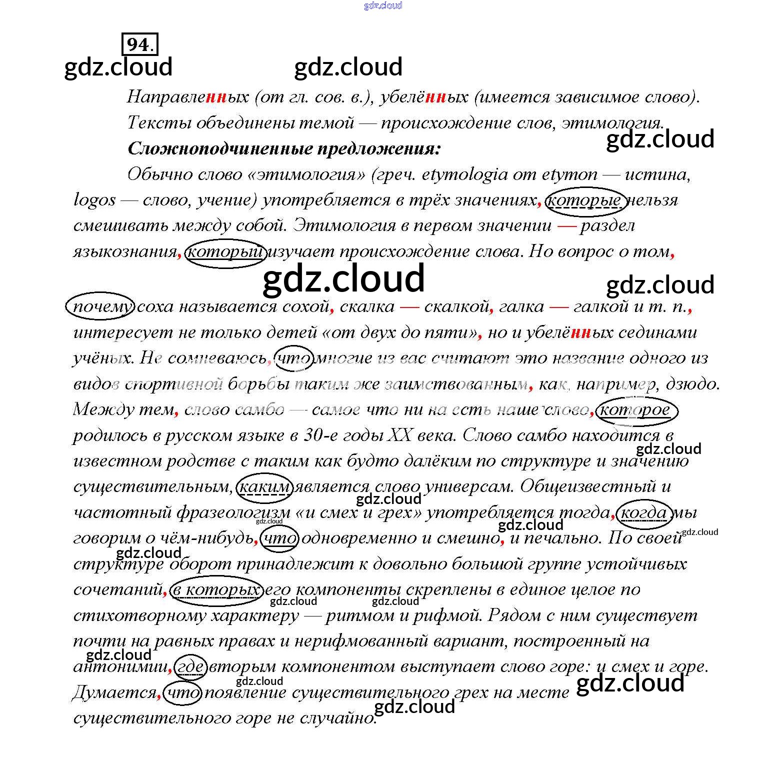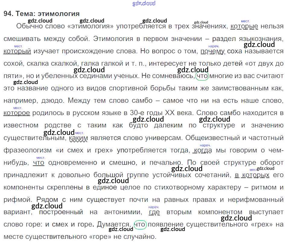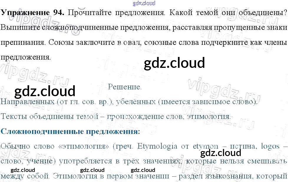 Ответ на задание 94 Учебник Русский язык за 9 (девятый) класс Тростенцова, Ладыженская, Дейкина, Александрова 2014