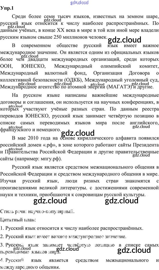Ответ на задание 1 Учебник Русский язык за 9 (девятый) класс Бархударов, Крючков, Максимов, Чешко 2011, 2019