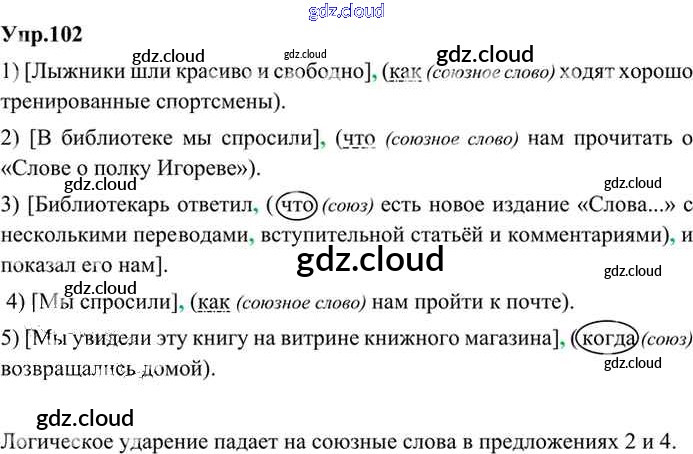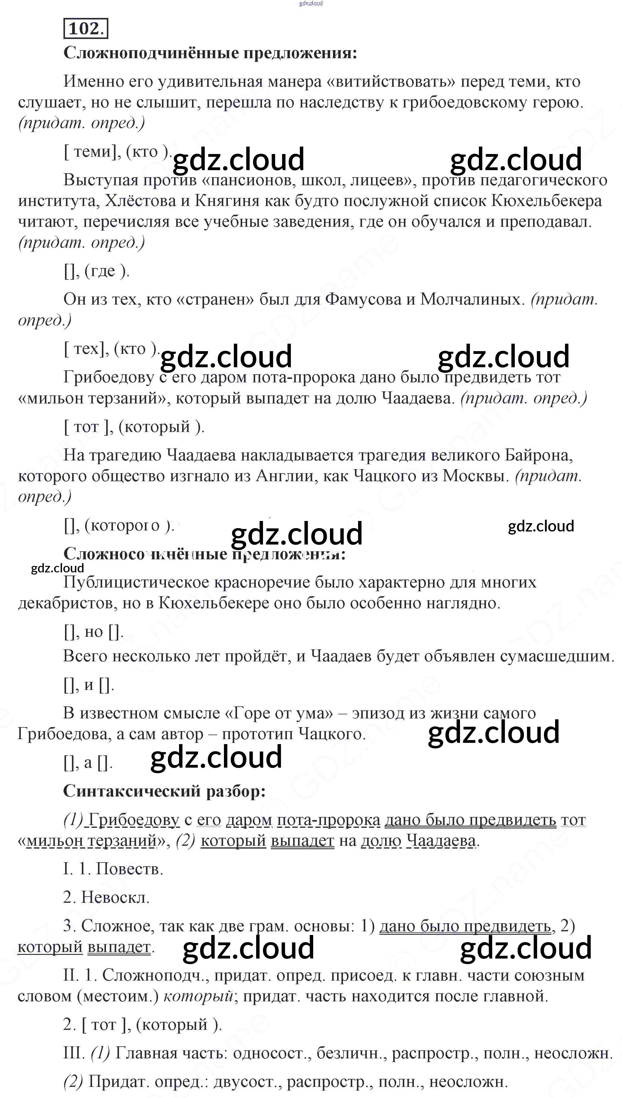 Ответ на задание 102 Учебник Русский язык за 9 (девятый) класс Бархударов, Крючков, Максимов, Чешко 2011, 2019