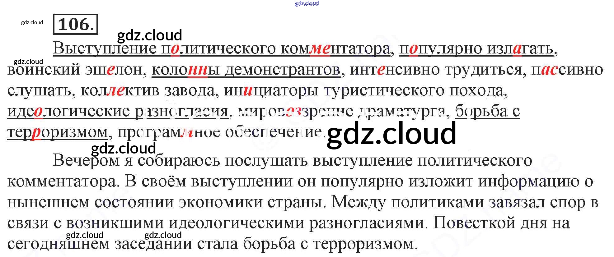 Ответ на задание 106 Учебник Русский язык за 9 (девятый) класс Бархударов, Крючков, Максимов, Чешко 2011, 2019