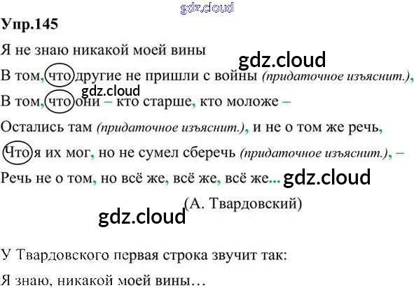 Ответ на задание 145 Учебник Русский язык за 9 (девятый) класс Бархударов, Крючков, Максимов, Чешко 2011, 2019