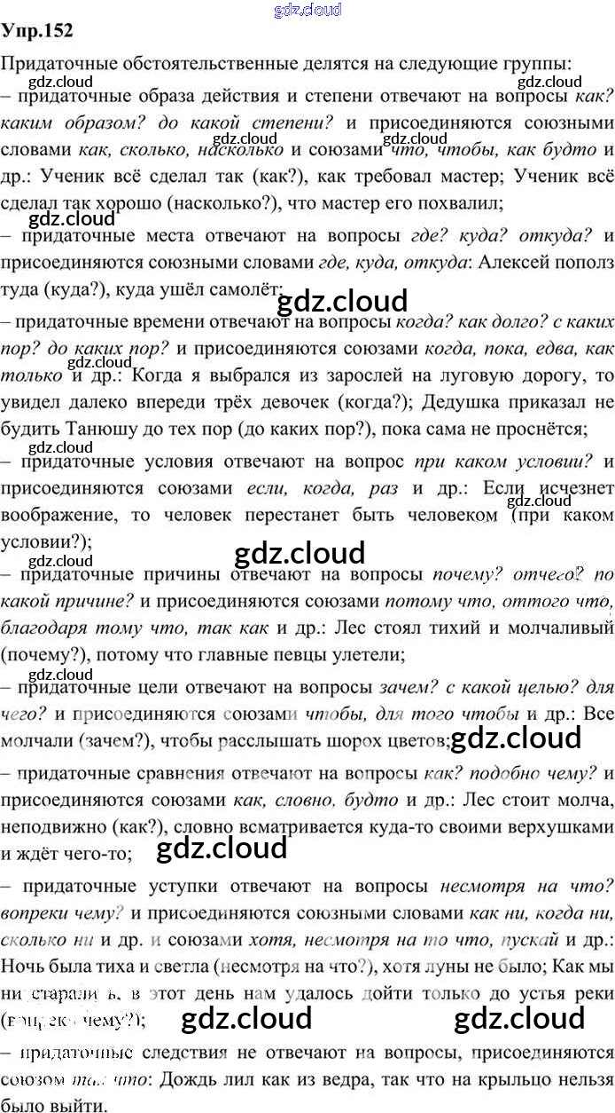 Ответ на задание 152 Учебник Русский язык за 9 (девятый) класс Бархударов, Крючков, Максимов, Чешко 2011, 2019
