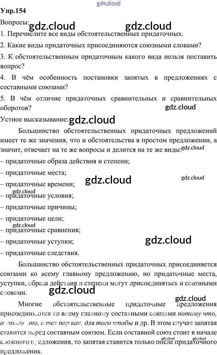 Ответ на задание 154 Учебник Русский язык за 9 (девятый) класс Бархударов, Крючков, Максимов, Чешко 2011, 2019
