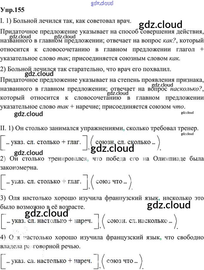 Ответ на задание 155 Учебник Русский язык за 9 (девятый) класс Бархударов, Крючков, Максимов, Чешко 2011, 2019
