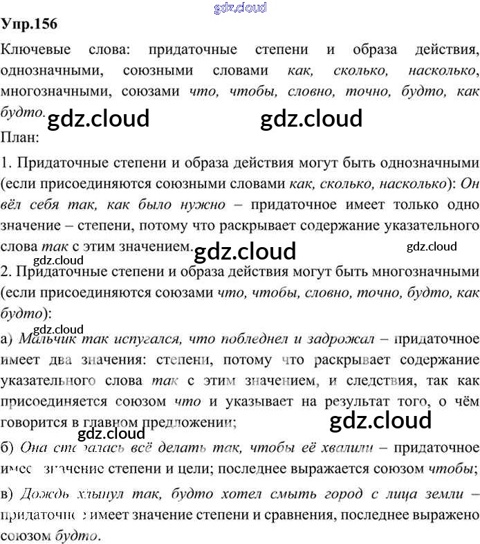 Ответ на задание 156 Учебник Русский язык за 9 (девятый) класс Бархударов, Крючков, Максимов, Чешко 2011, 2019