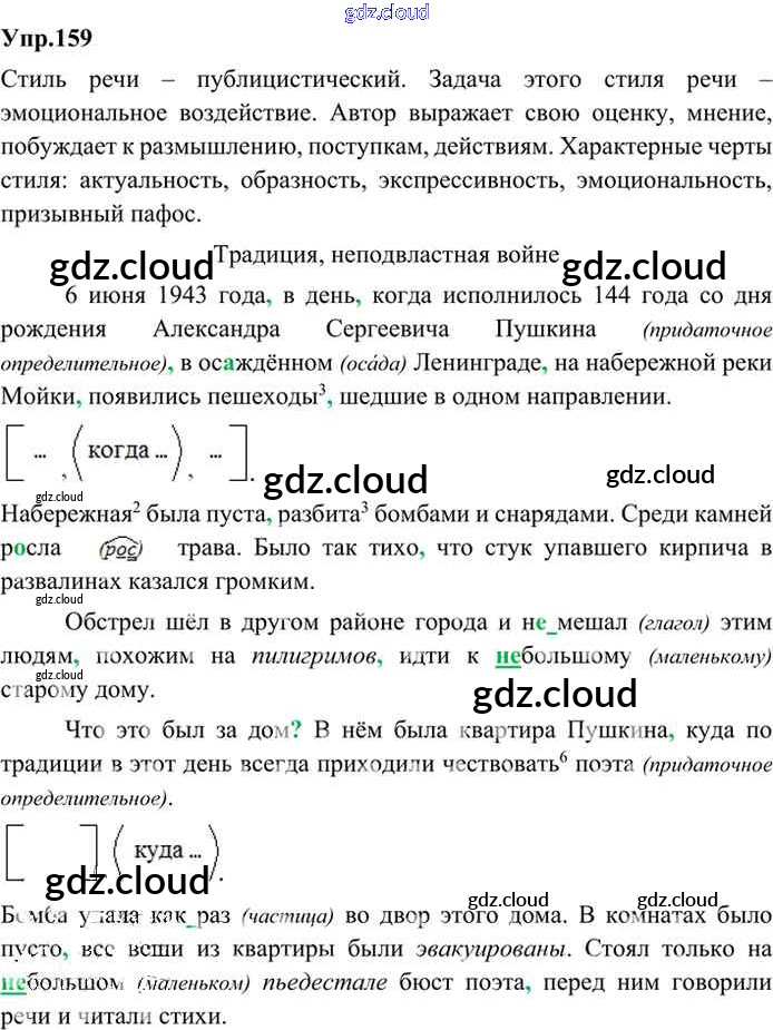 Ответ на задание 159 Учебник Русский язык за 9 (девятый) класс Бархударов, Крючков, Максимов, Чешко 2011, 2019