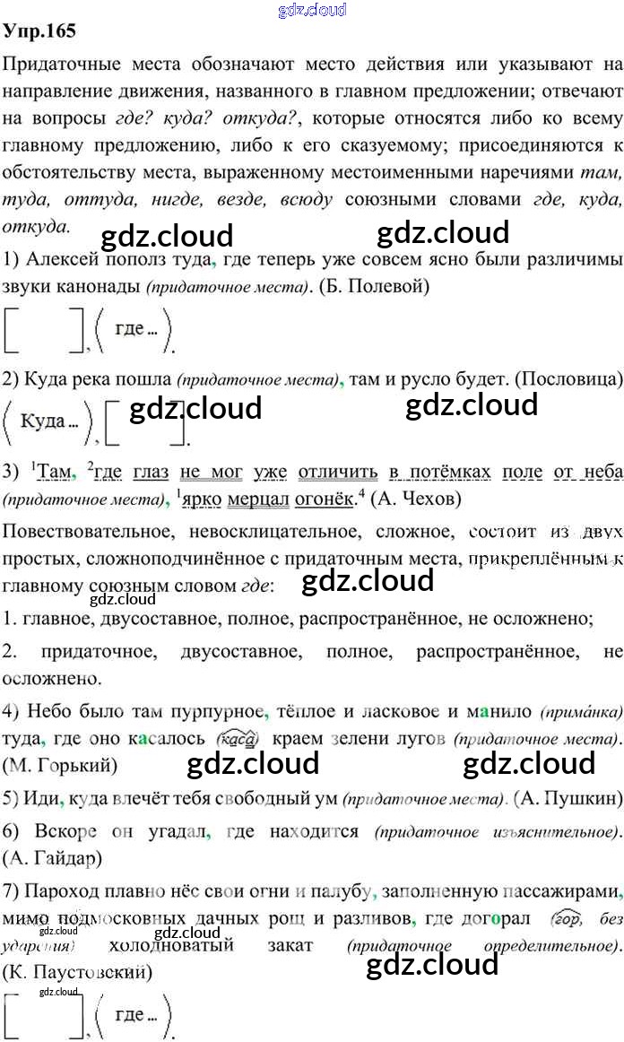 Ответ на задание 165 Учебник Русский язык за 9 (девятый) класс Бархударов, Крючков, Максимов, Чешко 2011, 2019