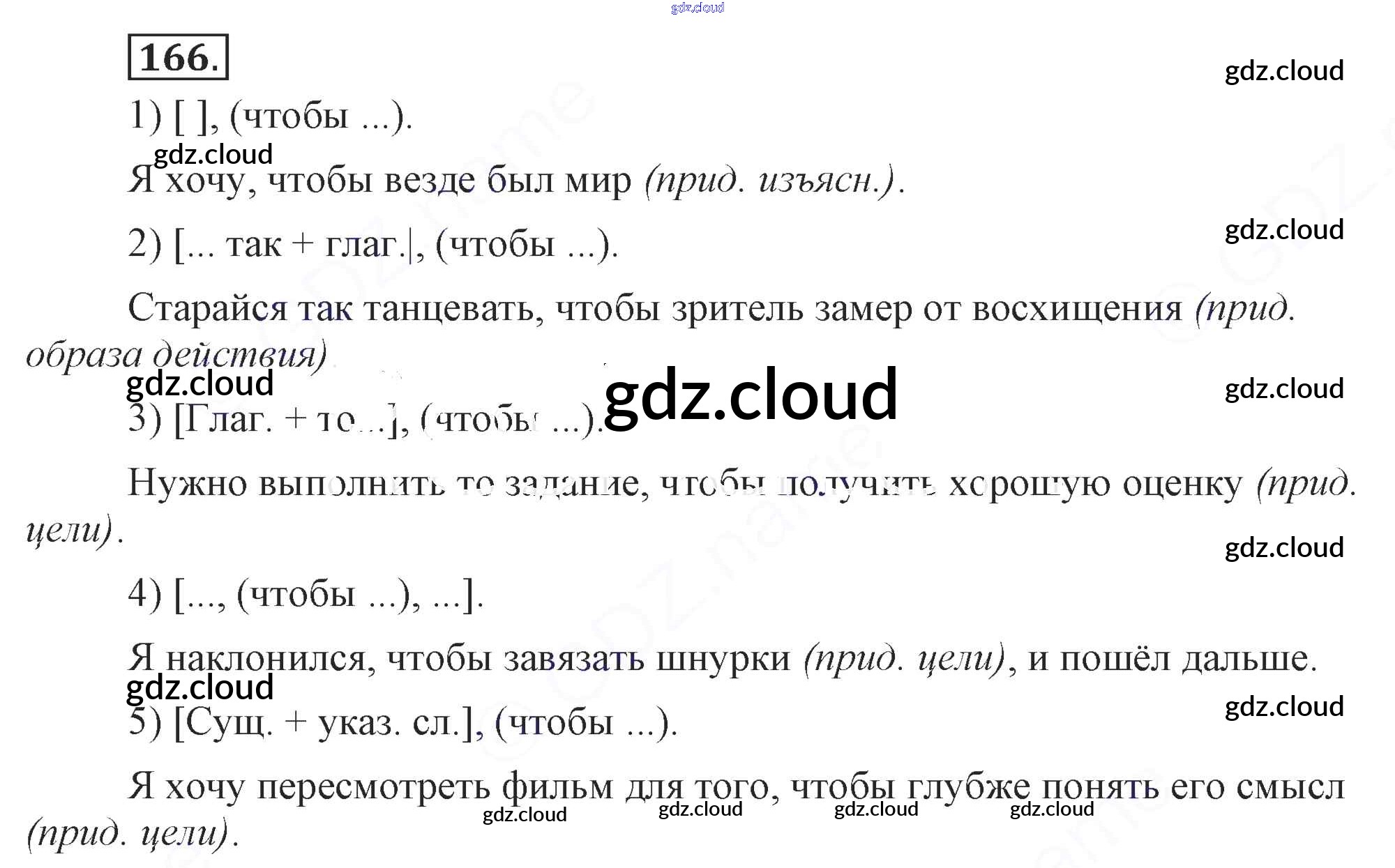 Ответ на задание 166 Учебник Русский язык за 9 (девятый) класс Бархударов, Крючков, Максимов, Чешко 2011, 2019