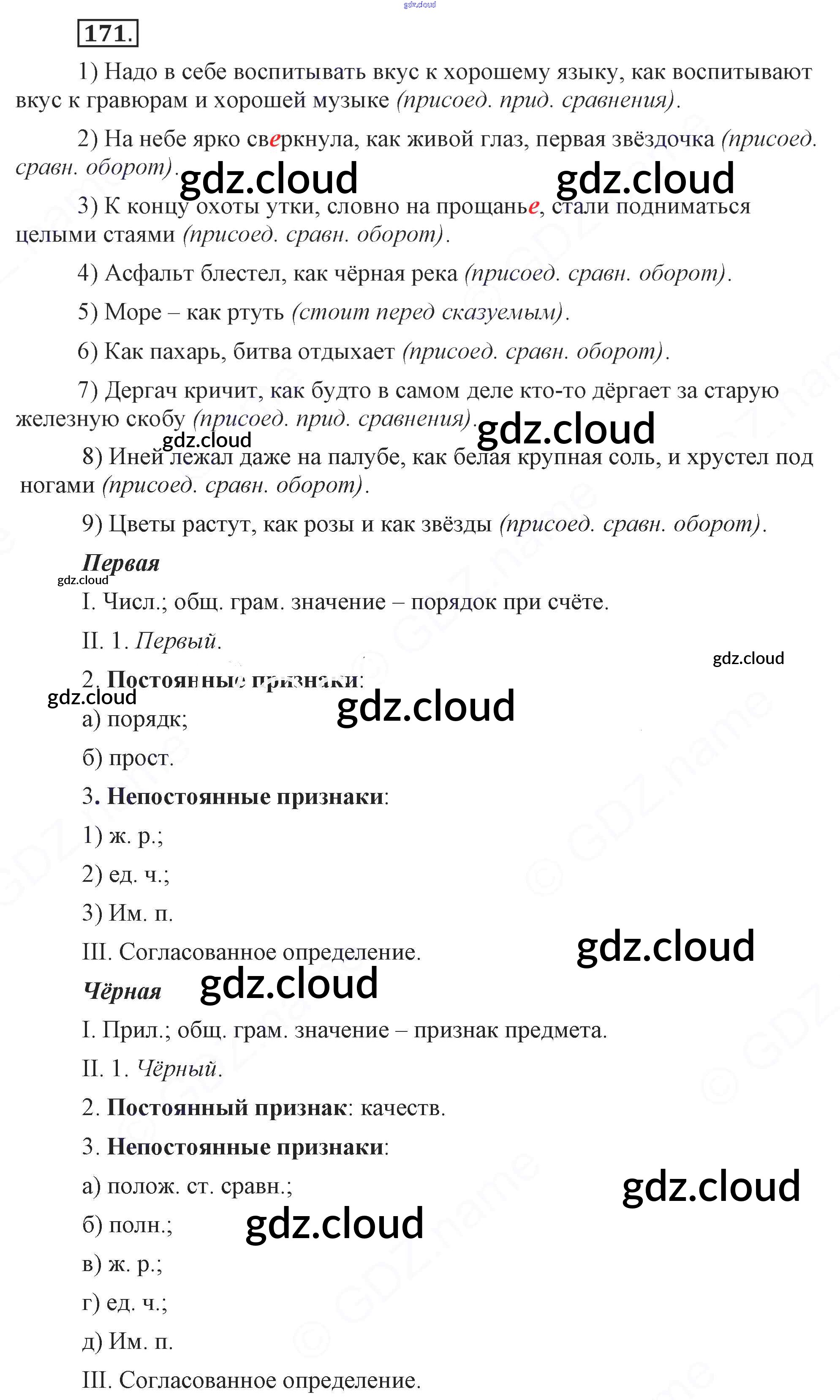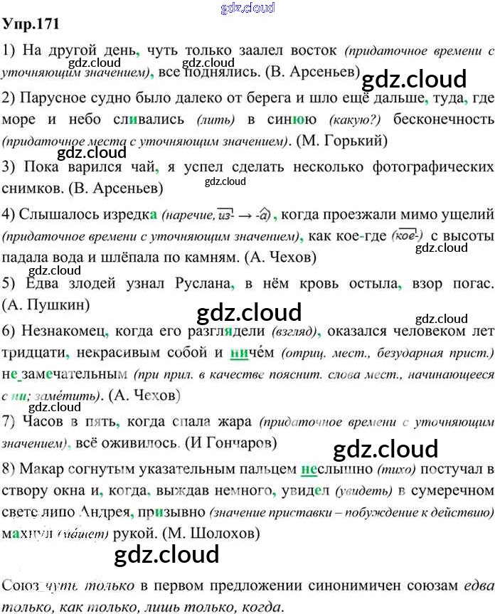 Ответ на задание 171 Учебник Русский язык за 9 (девятый) класс Бархударов, Крючков, Максимов, Чешко 2011, 2019