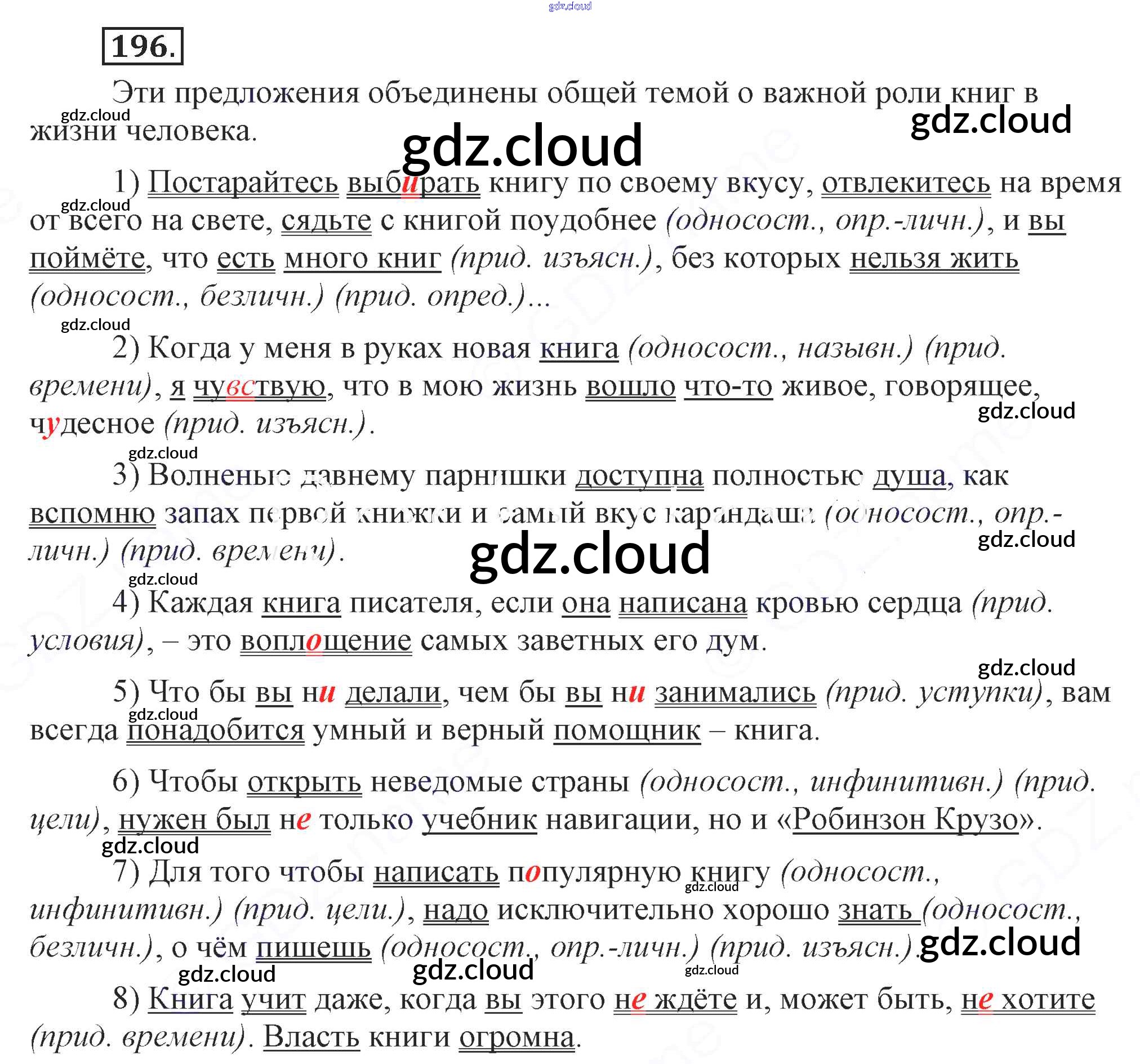 Ответ на задание 196 Учебник Русский язык за 9 (девятый) класс Бархударов, Крючков, Максимов, Чешко 2011, 2019
