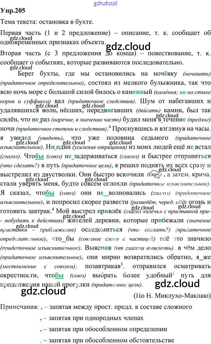 Ответ на задание 205 Учебник Русский язык за 9 (девятый) класс Бархударов, Крючков, Максимов, Чешко 2011, 2019