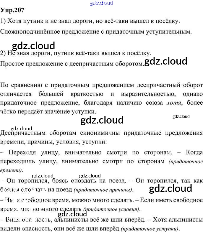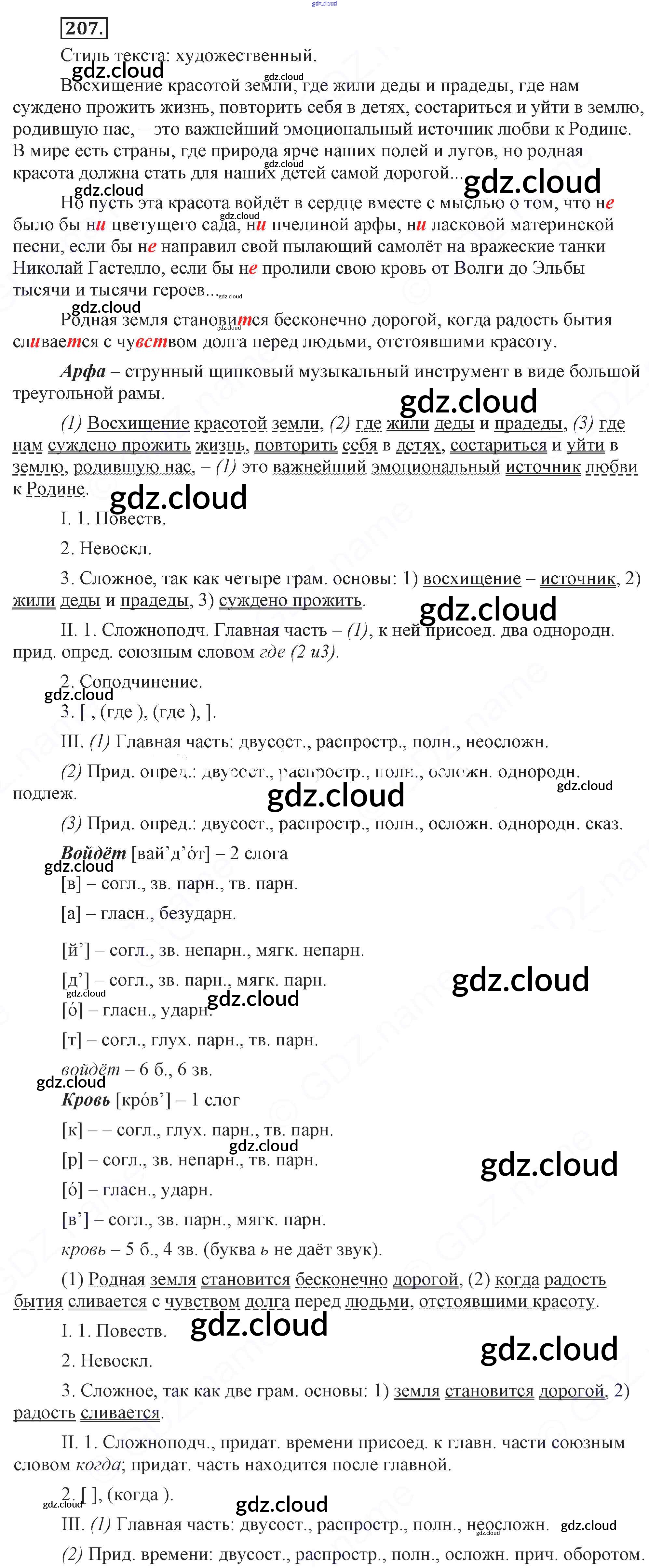 Ответ на задание 207 Учебник Русский язык за 9 (девятый) класс Бархударов, Крючков, Максимов, Чешко 2011, 2019