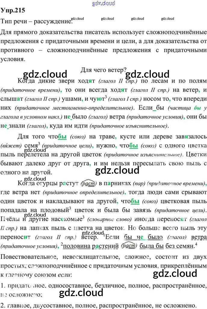 Ответ на задание 215 Учебник Русский язык за 9 (девятый) класс Бархударов, Крючков, Максимов, Чешко 2011, 2019