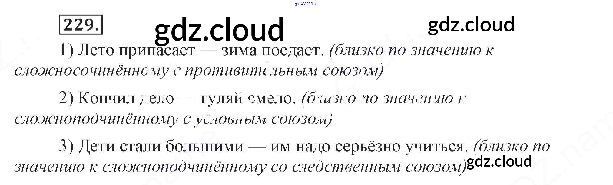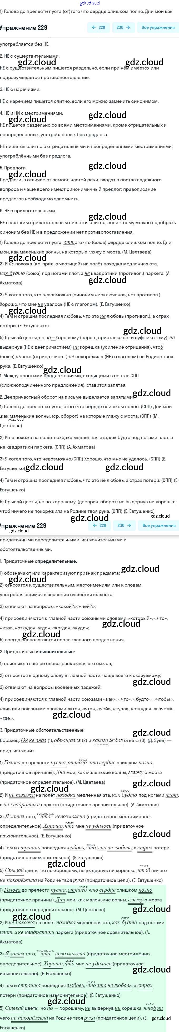 Ответ на задание 229 Учебник Русский язык за 9 (девятый) класс Бархударов, Крючков, Максимов, Чешко 2011, 2019