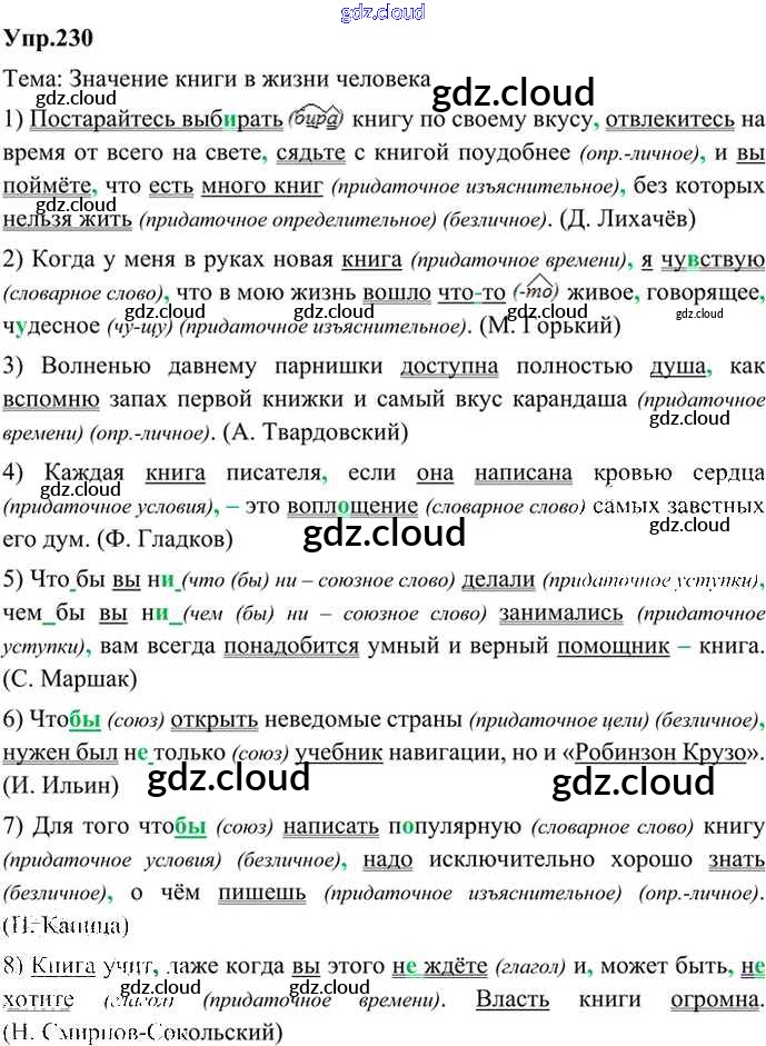 Ответ на задание 230 Учебник Русский язык за 9 (девятый) класс Бархударов, Крючков, Максимов, Чешко 2011, 2019