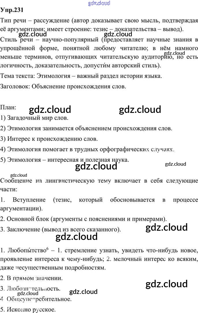Ответ на задание 231 Учебник Русский язык за 9 (девятый) класс Бархударов, Крючков, Максимов, Чешко 2011, 2019