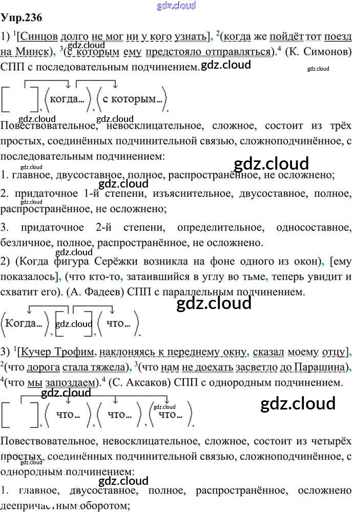 Ответ на задание 236 Учебник Русский язык за 9 (девятый) класс Бархударов, Крючков, Максимов, Чешко 2011, 2019
