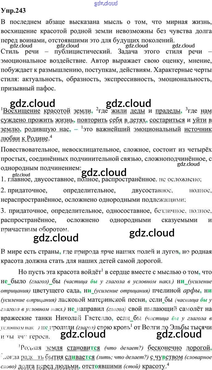 Ответ на задание 243 Учебник Русский язык за 9 (девятый) класс Бархударов, Крючков, Максимов, Чешко 2011, 2019