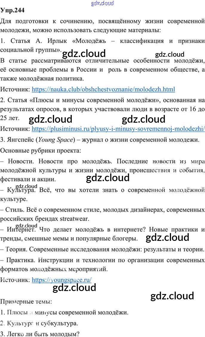 Ответ на задание 244 Учебник Русский язык за 9 (девятый) класс Бархударов, Крючков, Максимов, Чешко 2011, 2019