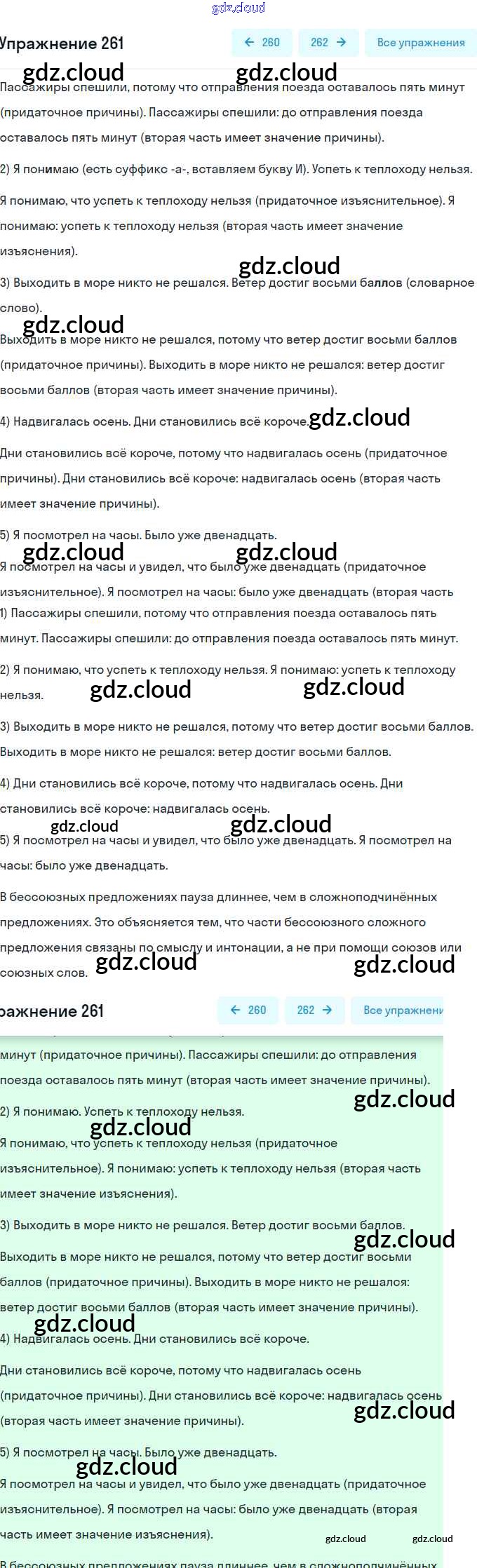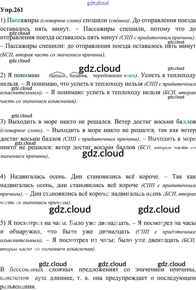 Ответ на задание 261 Учебник Русский язык за 9 (девятый) класс Бархударов, Крючков, Максимов, Чешко 2011, 2019