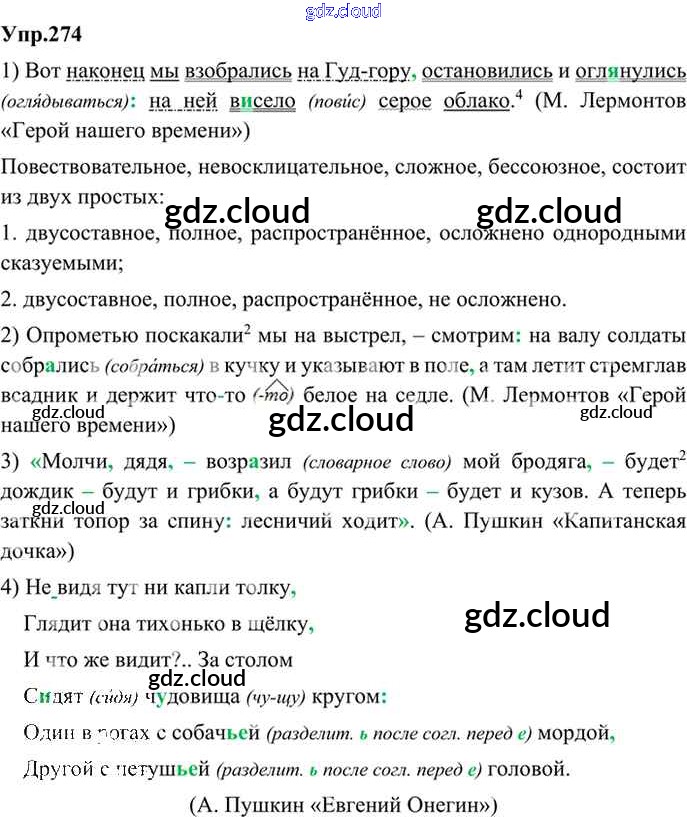 Ответ на задание 274 Учебник Русский язык за 9 (девятый) класс Бархударов, Крючков, Максимов, Чешко 2011, 2019