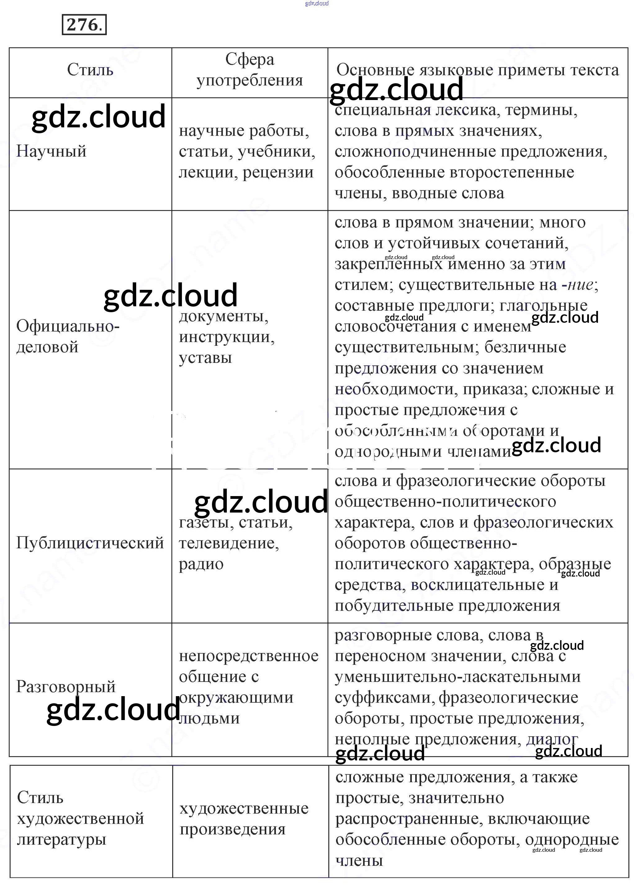 Ответ на задание 276 Учебник Русский язык за 9 (девятый) класс Бархударов, Крючков, Максимов, Чешко 2011, 2019