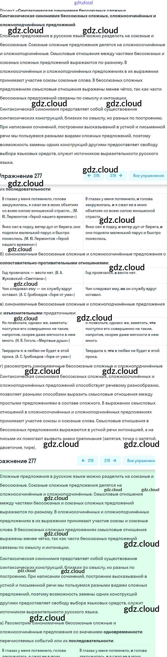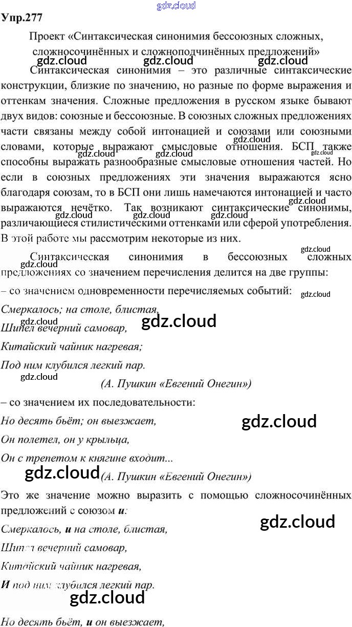 Ответ на задание 277 Учебник Русский язык за 9 (девятый) класс Бархударов, Крючков, Максимов, Чешко 2011, 2019