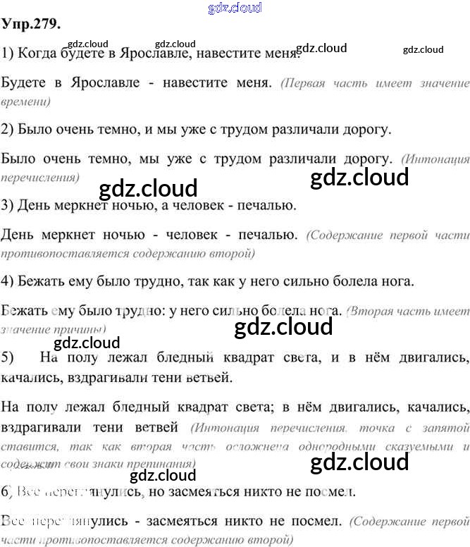Ответ на задание 279 Учебник Русский язык за 9 (девятый) класс Бархударов, Крючков, Максимов, Чешко 2011, 2019