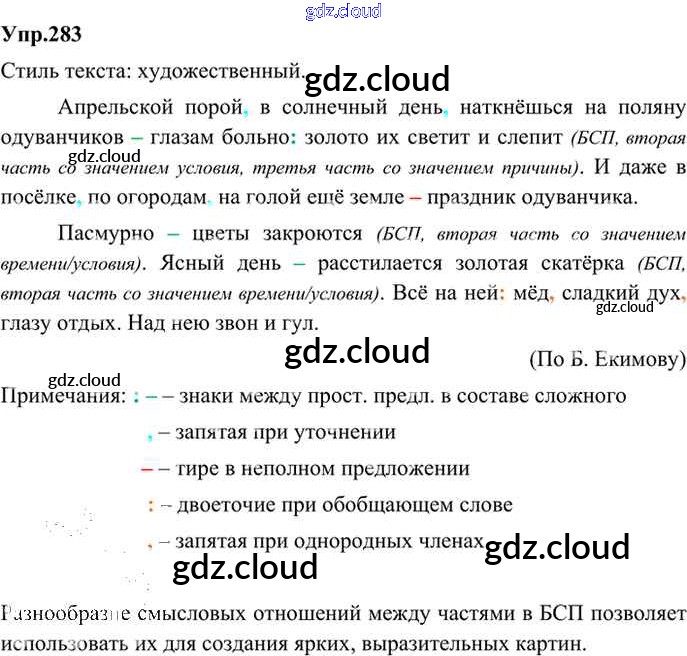 Ответ на задание 283 Учебник Русский язык за 9 (девятый) класс Бархударов, Крючков, Максимов, Чешко 2011, 2019