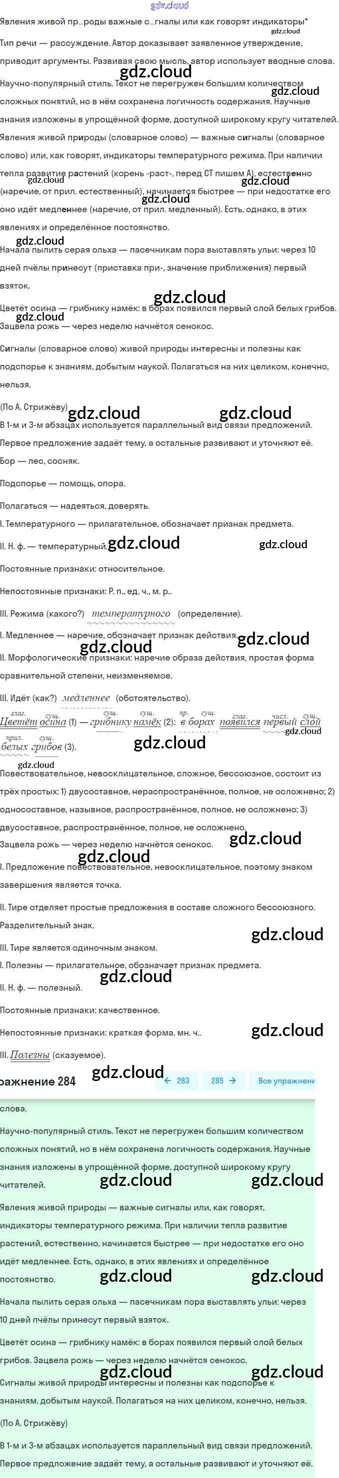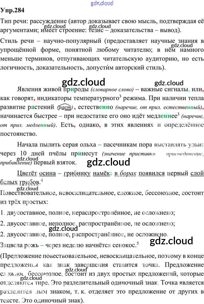 Ответ на задание 284 Учебник Русский язык за 9 (девятый) класс Бархударов, Крючков, Максимов, Чешко 2011, 2019