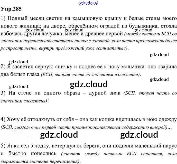 Ответ на задание 285 Учебник Русский язык за 9 (девятый) класс Бархударов, Крючков, Максимов, Чешко 2011, 2019