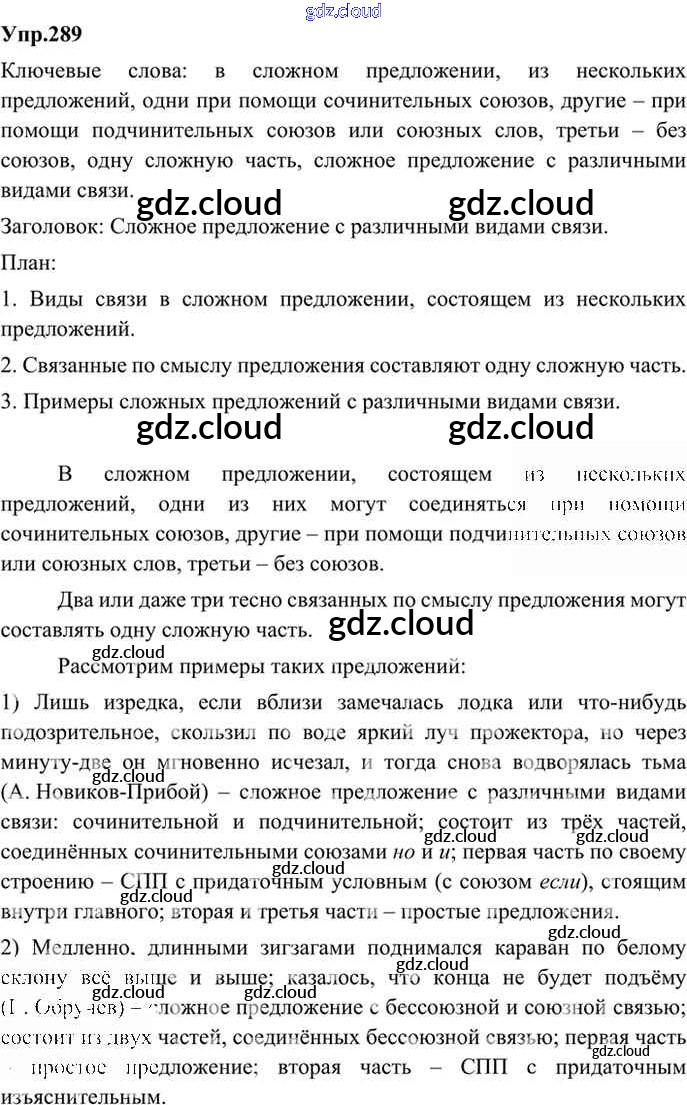 Ответ на задание 289 Учебник Русский язык за 9 (девятый) класс Бархударов, Крючков, Максимов, Чешко 2011, 2019