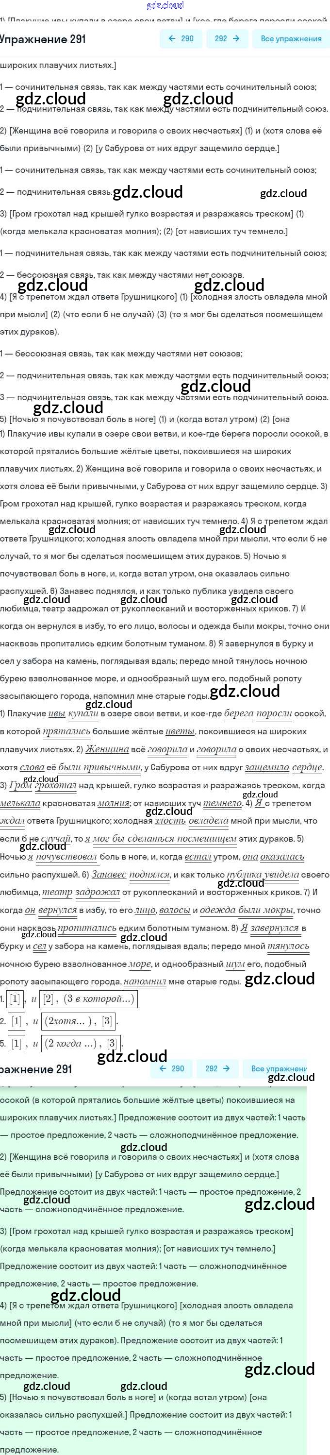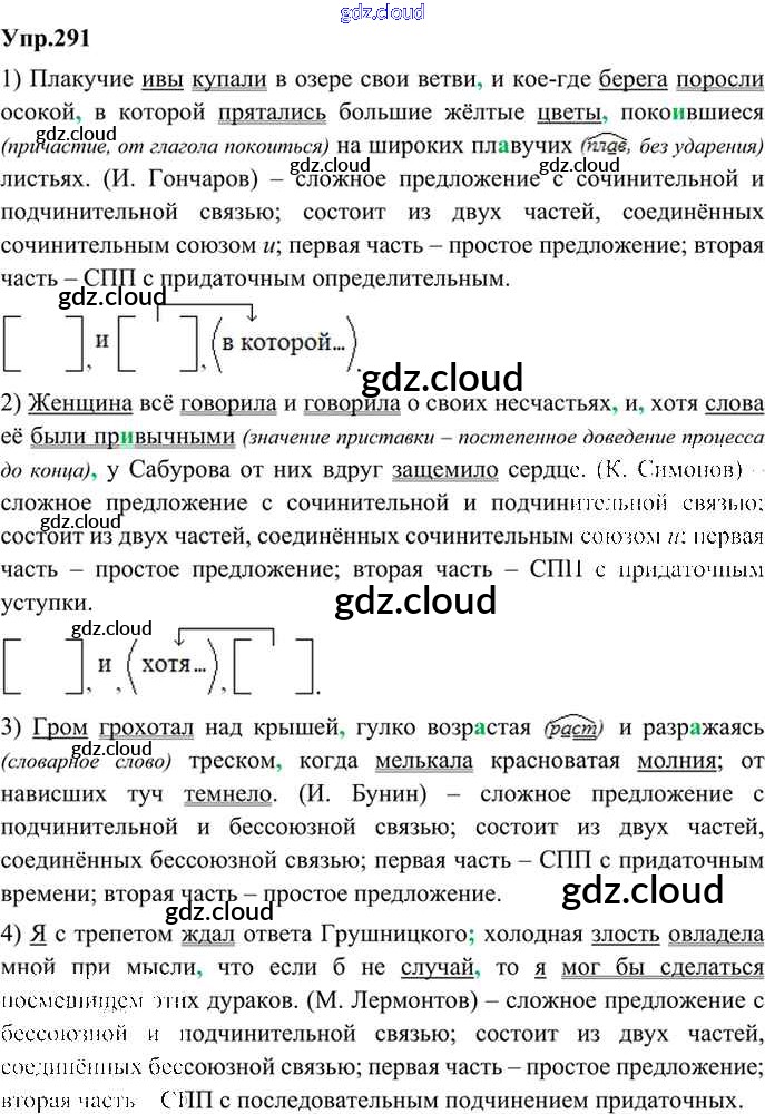 Ответ на задание 291 Учебник Русский язык за 9 (девятый) класс Бархударов, Крючков, Максимов, Чешко 2011, 2019