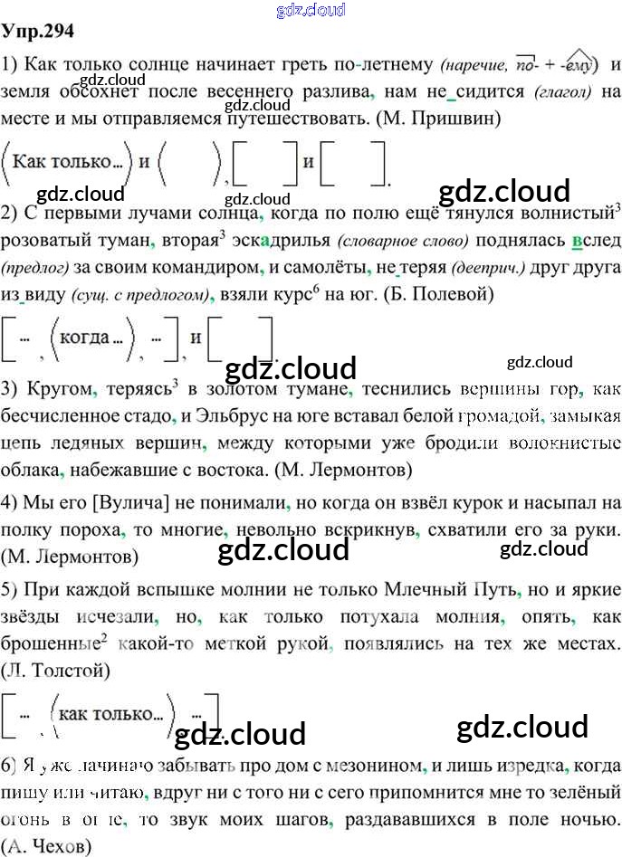 Ответ на задание 294 Учебник Русский язык за 9 (девятый) класс Бархударов, Крючков, Максимов, Чешко 2011, 2019