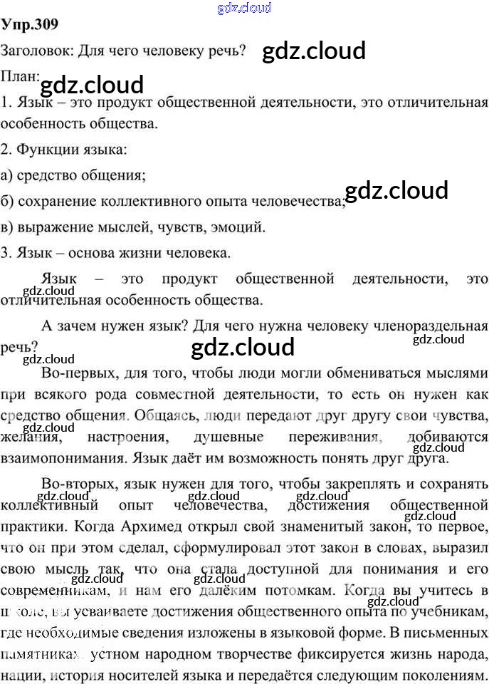Ответ на задание 309 Учебник Русский язык за 9 (девятый) класс Бархударов, Крючков, Максимов, Чешко 2011, 2019