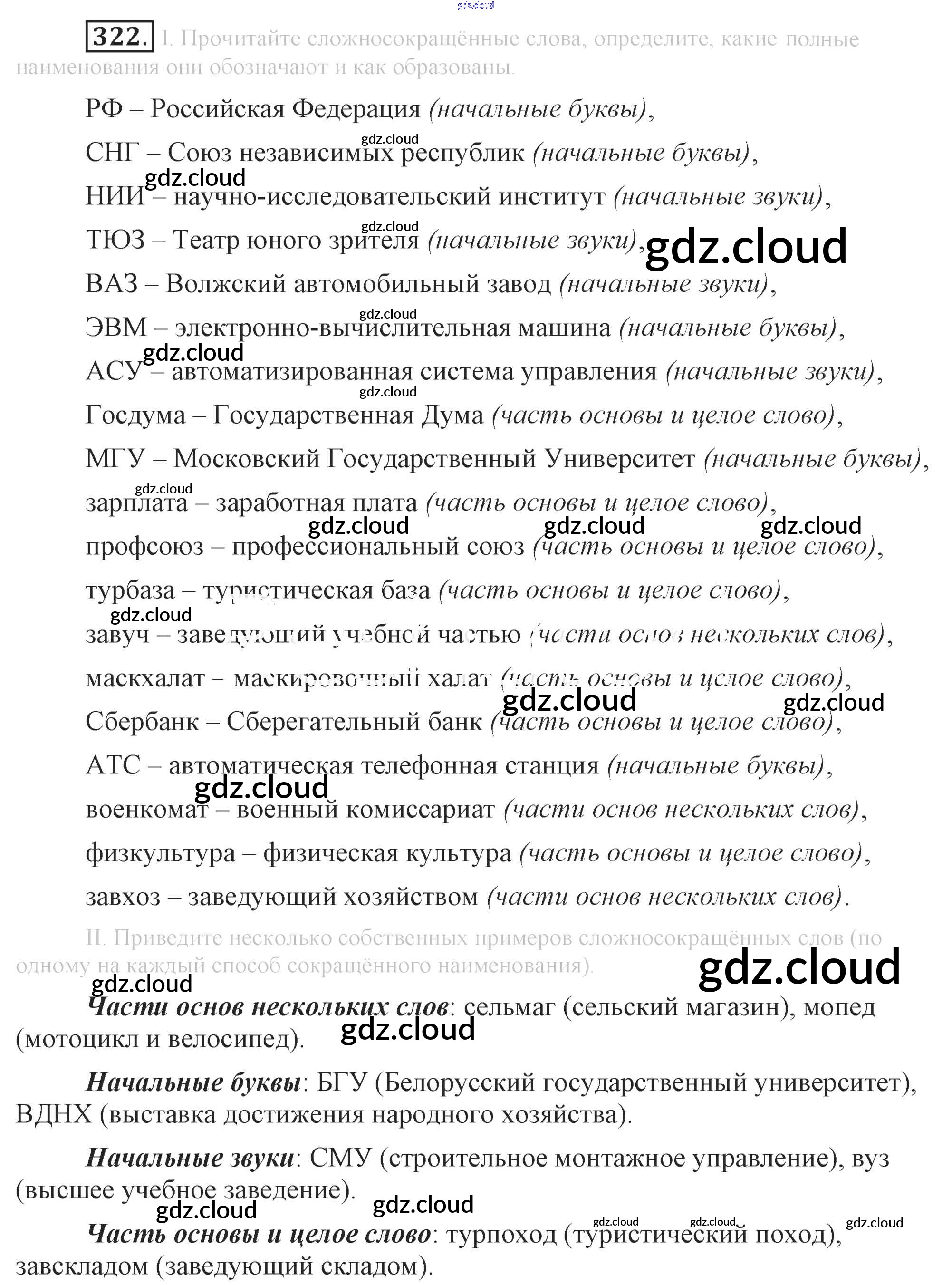 Ответ на задание 322 Учебник Русский язык за 9 (девятый) класс Бархударов, Крючков, Максимов, Чешко 2011, 2019