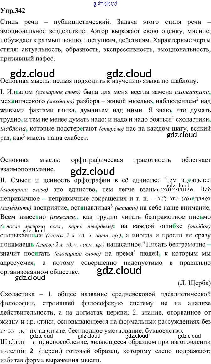 Ответ на задание 342 Учебник Русский язык за 9 (девятый) класс Бархударов, Крючков, Максимов, Чешко 2011, 2019