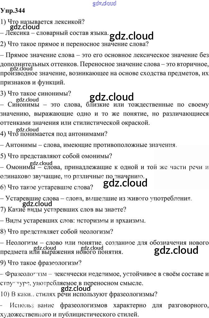 Ответ на задание 344 Учебник Русский язык за 9 (девятый) класс Бархударов, Крючков, Максимов, Чешко 2011, 2019