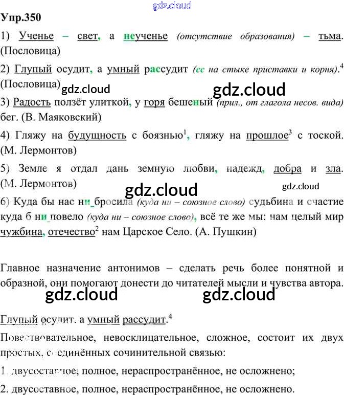Ответ на задание 350 Учебник Русский язык за 9 (девятый) класс Бархударов, Крючков, Максимов, Чешко 2011, 2019