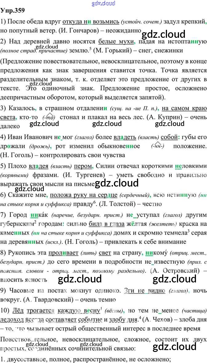 Ответ на задание 359 Учебник Русский язык за 9 (девятый) класс Бархударов, Крючков, Максимов, Чешко 2011, 2019