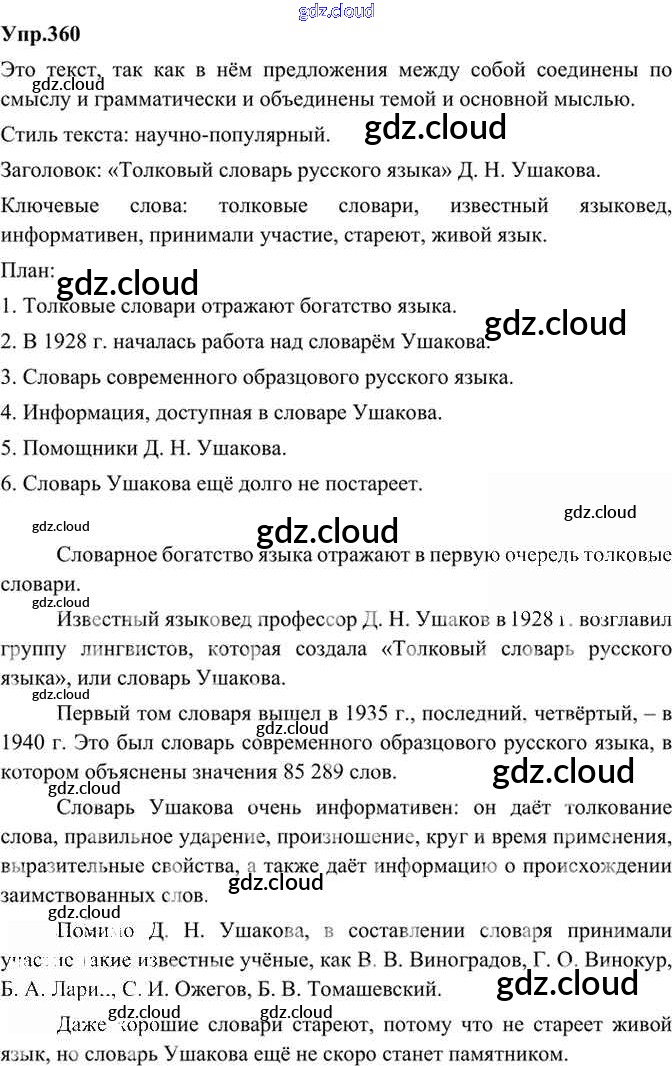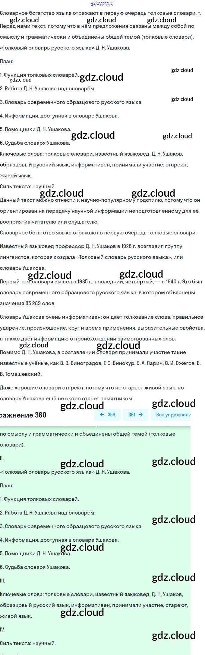 Ответ на задание 360 Учебник Русский язык за 9 (девятый) класс Бархударов, Крючков, Максимов, Чешко 2011, 2019