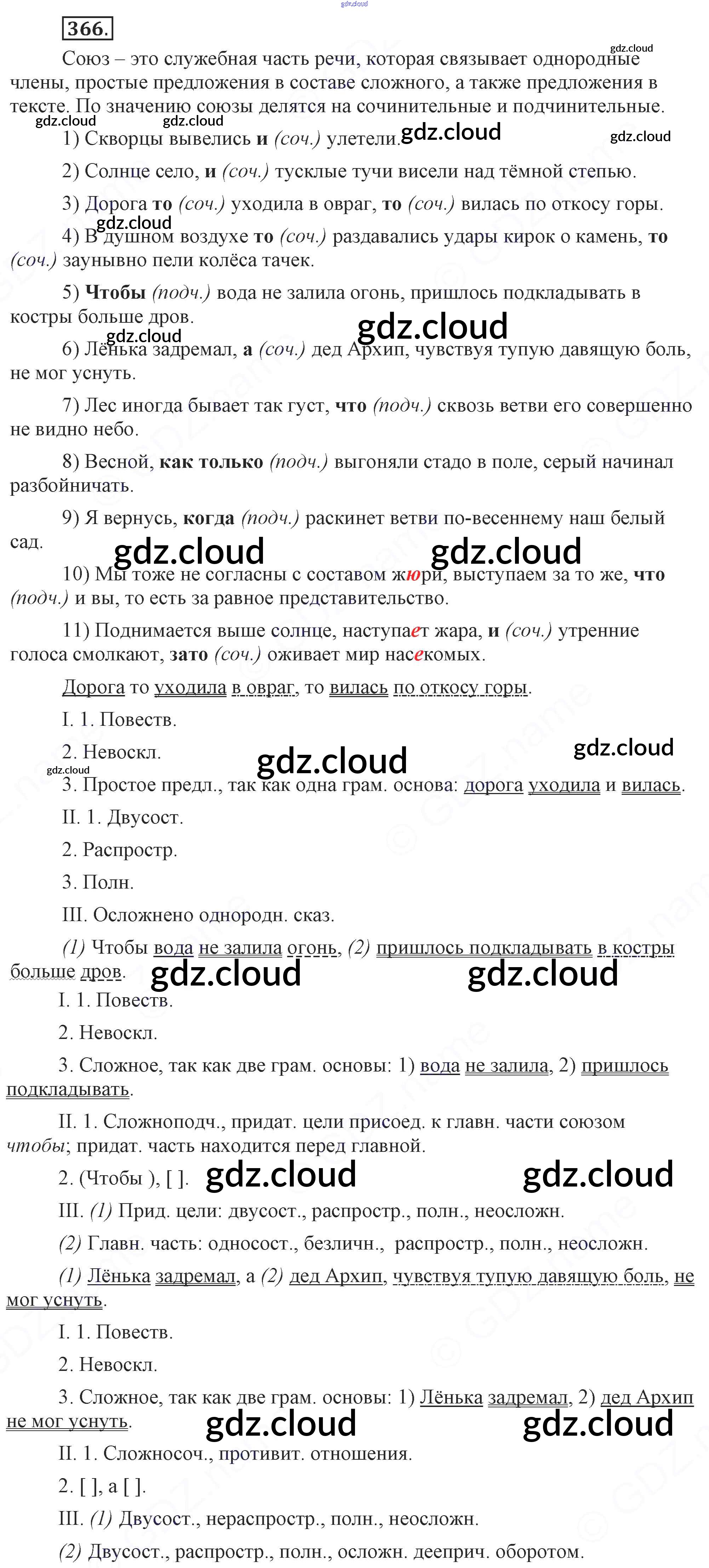 Ответ на задание 366 Учебник Русский язык за 9 (девятый) класс Бархударов, Крючков, Максимов, Чешко 2011, 2019