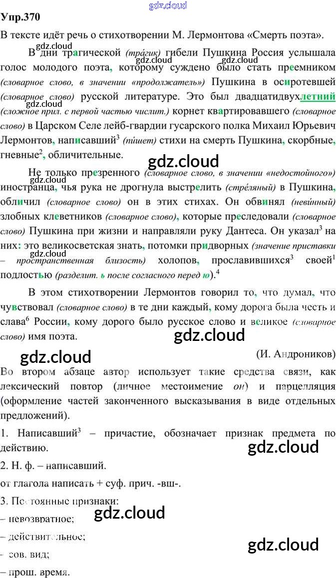 Ответ на задание 370 Учебник Русский язык за 9 (девятый) класс Бархударов, Крючков, Максимов, Чешко 2011, 2019