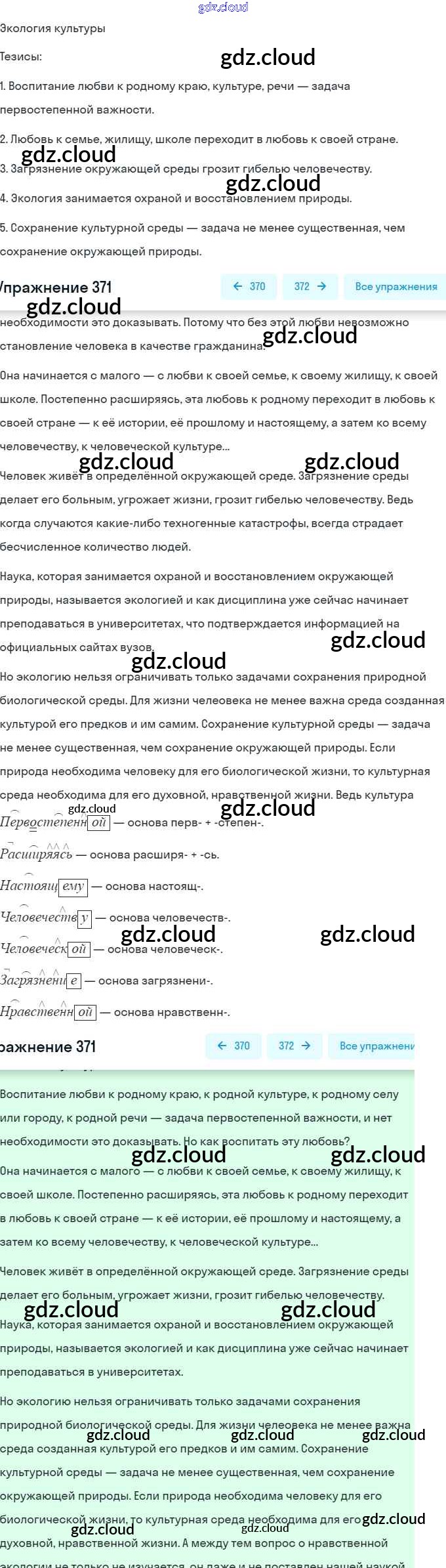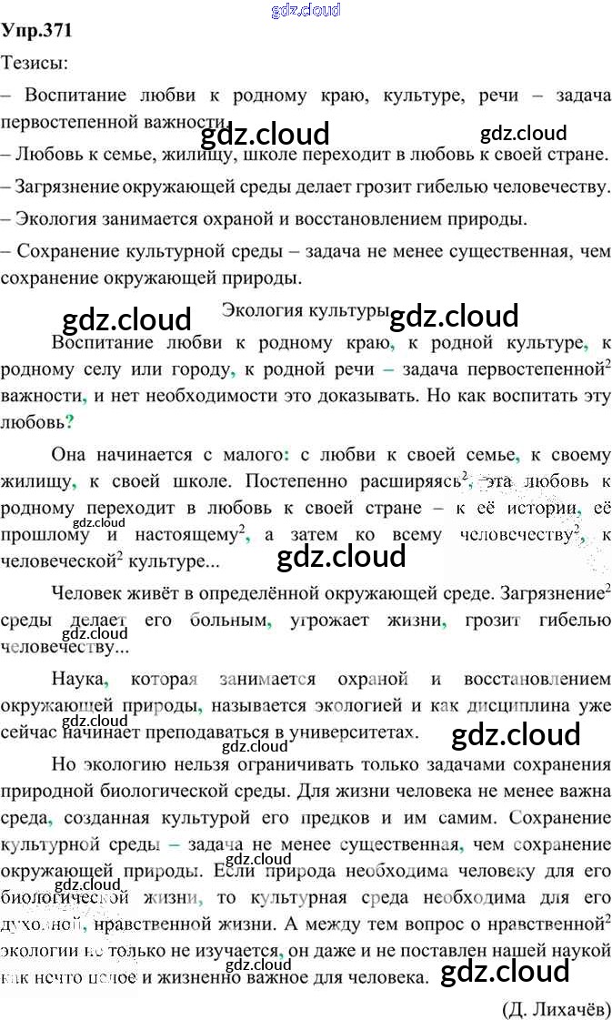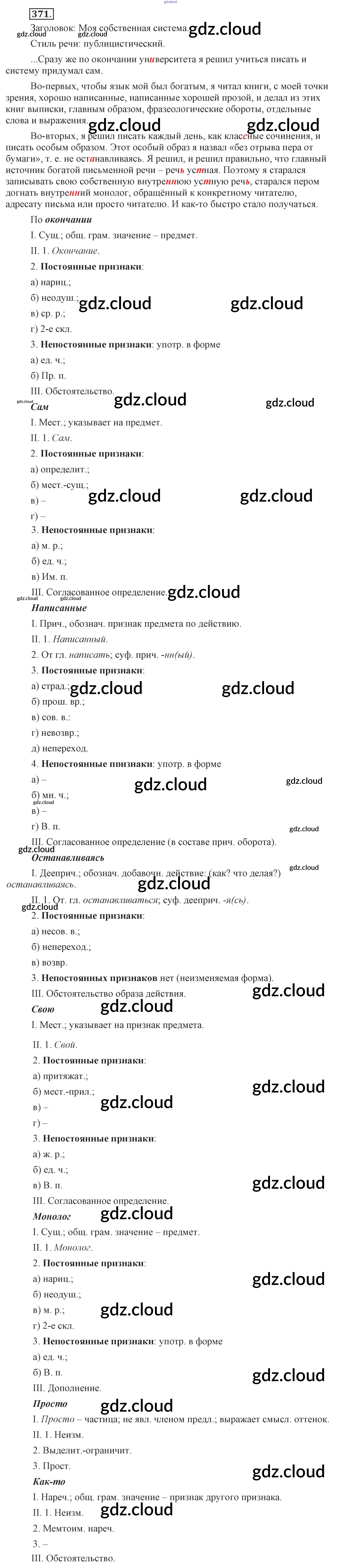 Ответ на задание 371 Учебник Русский язык за 9 (девятый) класс Бархударов, Крючков, Максимов, Чешко 2011, 2019