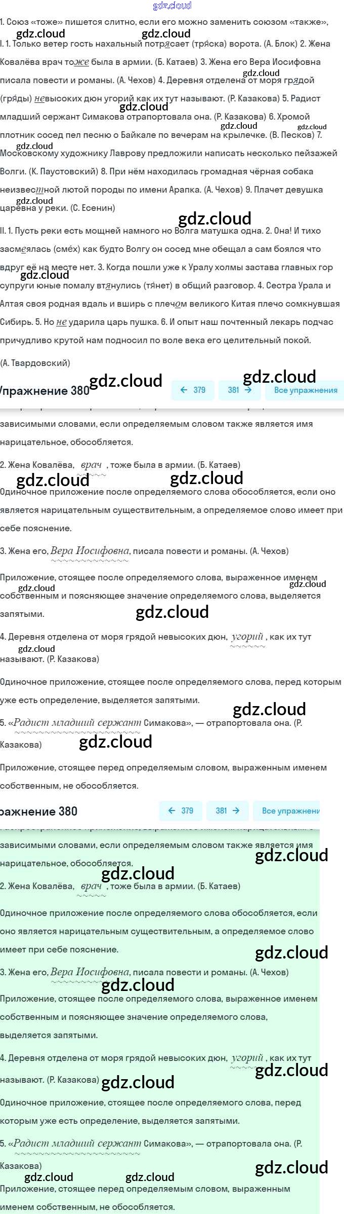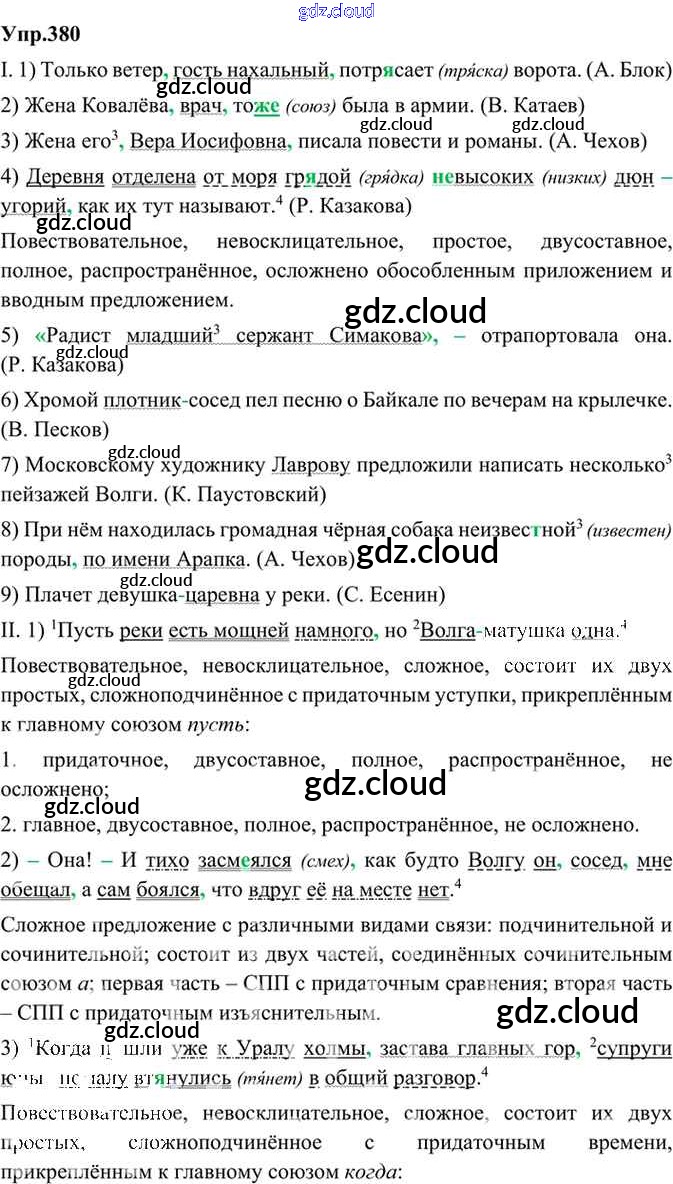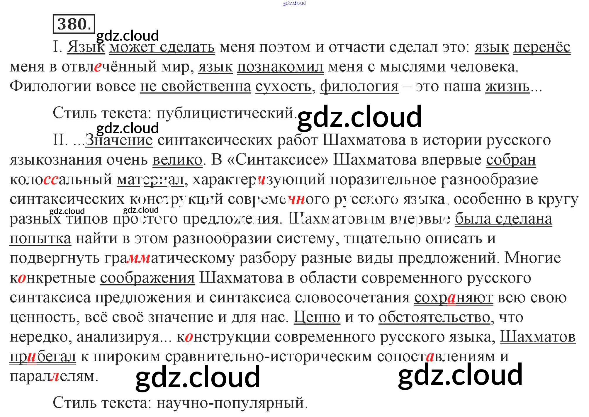 Ответ на задание 380 Учебник Русский язык за 9 (девятый) класс Бархударов, Крючков, Максимов, Чешко 2011, 2019