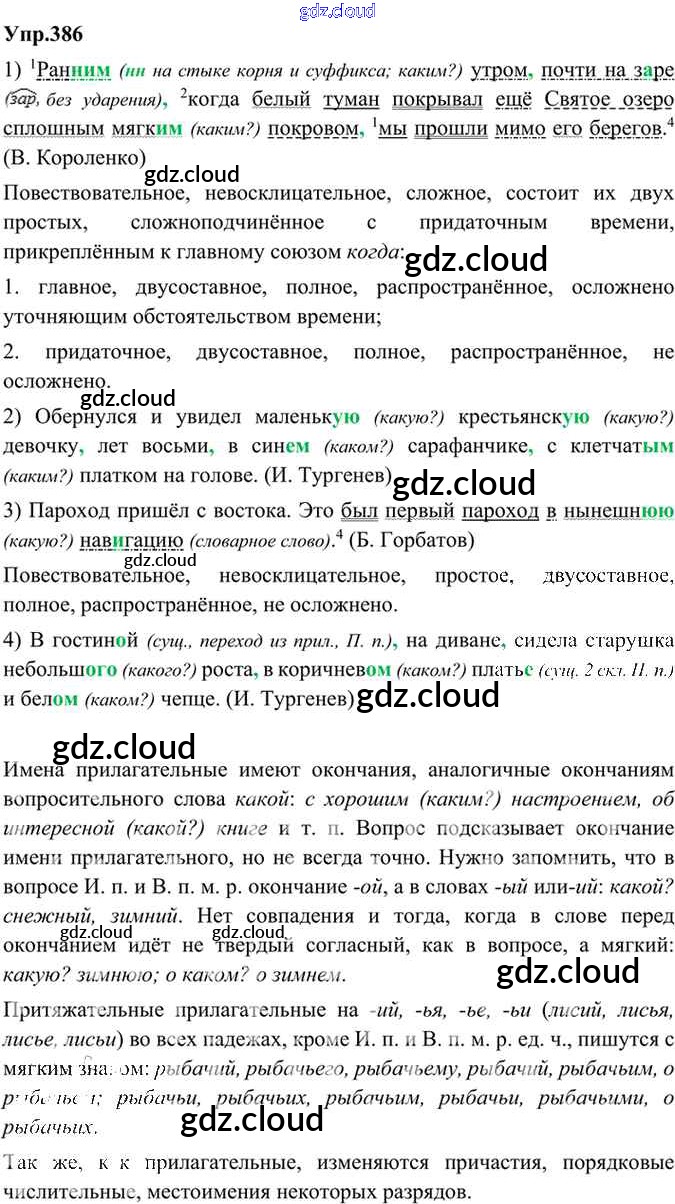 Ответ на задание 386 Учебник Русский язык за 9 (девятый) класс Бархударов, Крючков, Максимов, Чешко 2011, 2019