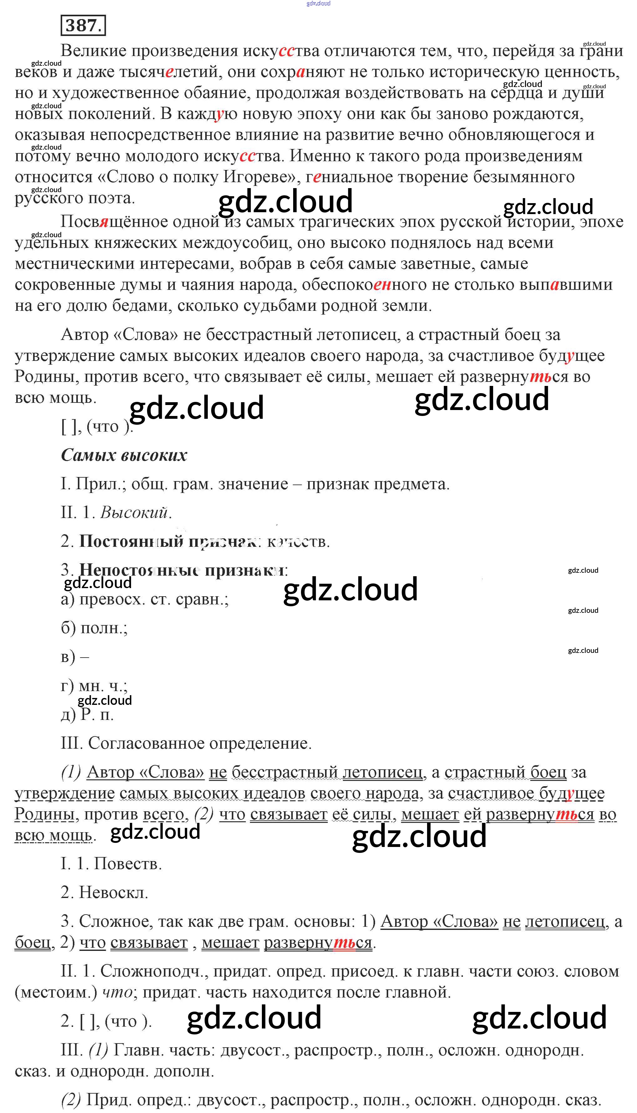 Ответ на задание 387 Учебник Русский язык за 9 (девятый) класс Бархударов, Крючков, Максимов, Чешко 2011, 2019