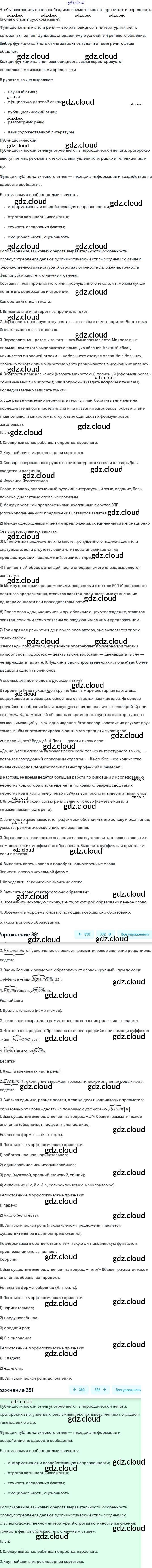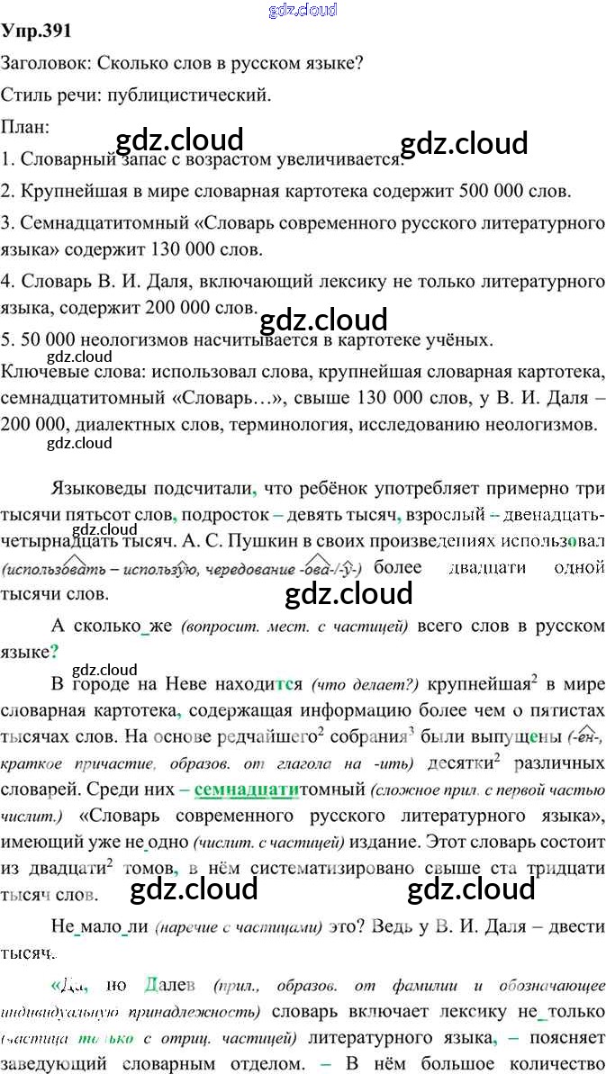 Ответ на задание 391 Учебник Русский язык за 9 (девятый) класс Бархударов, Крючков, Максимов, Чешко 2011, 2019