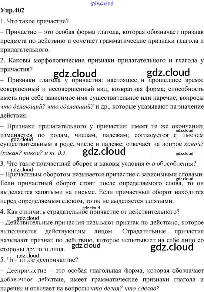 Ответ на задание 402 Учебник Русский язык за 9 (девятый) класс Бархударов, Крючков, Максимов, Чешко 2011, 2019