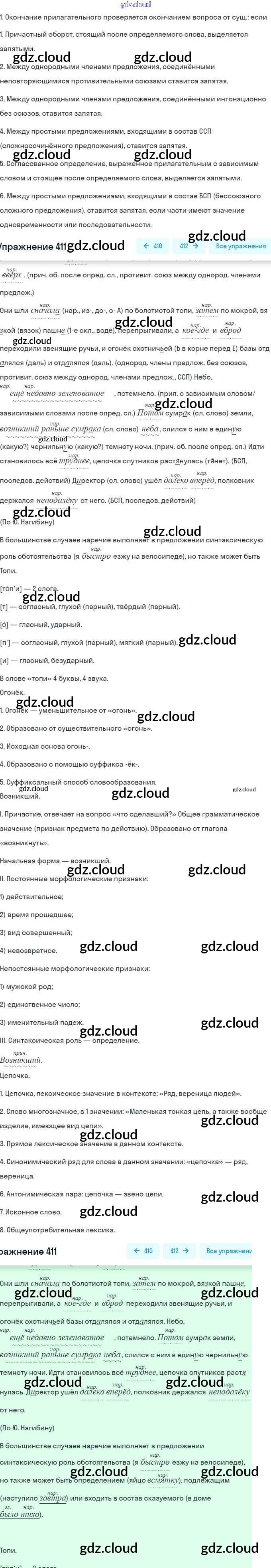 Ответ на задание 411 Учебник Русский язык за 9 (девятый) класс Бархударов, Крючков, Максимов, Чешко 2011, 2019